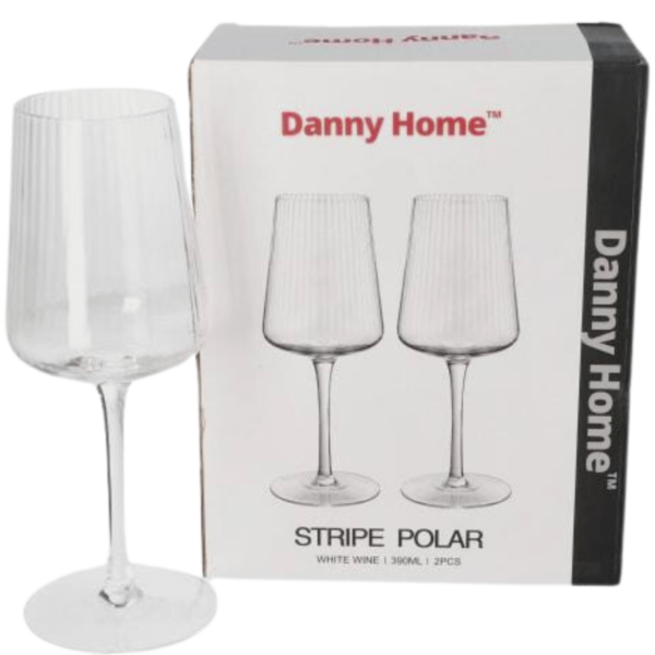 The Danny Home Stripe Polar Wine Glass features a sleek, modern design with subtle stripe patterns that add a touch of sophistication. The glass is made from high-quality, lead-free crystal, ensuring durability and clarity. Its thin rim and tapered bowl are designed to capture and enhance the aromas and flavours of your favourite wines, providing a superior tasting experience.in this exquisite glass.