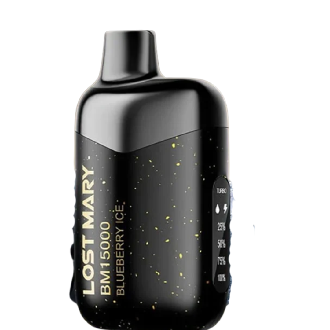 Lost Mary 15K Puffs Blueberry Ice is a rechargeable disposable vape offering up to 15,000 puffs. It features a blueberry flavour blended with a cooling menthol finish, a high-capacity battery and a pre-filled e-liquid system designed for extended use.